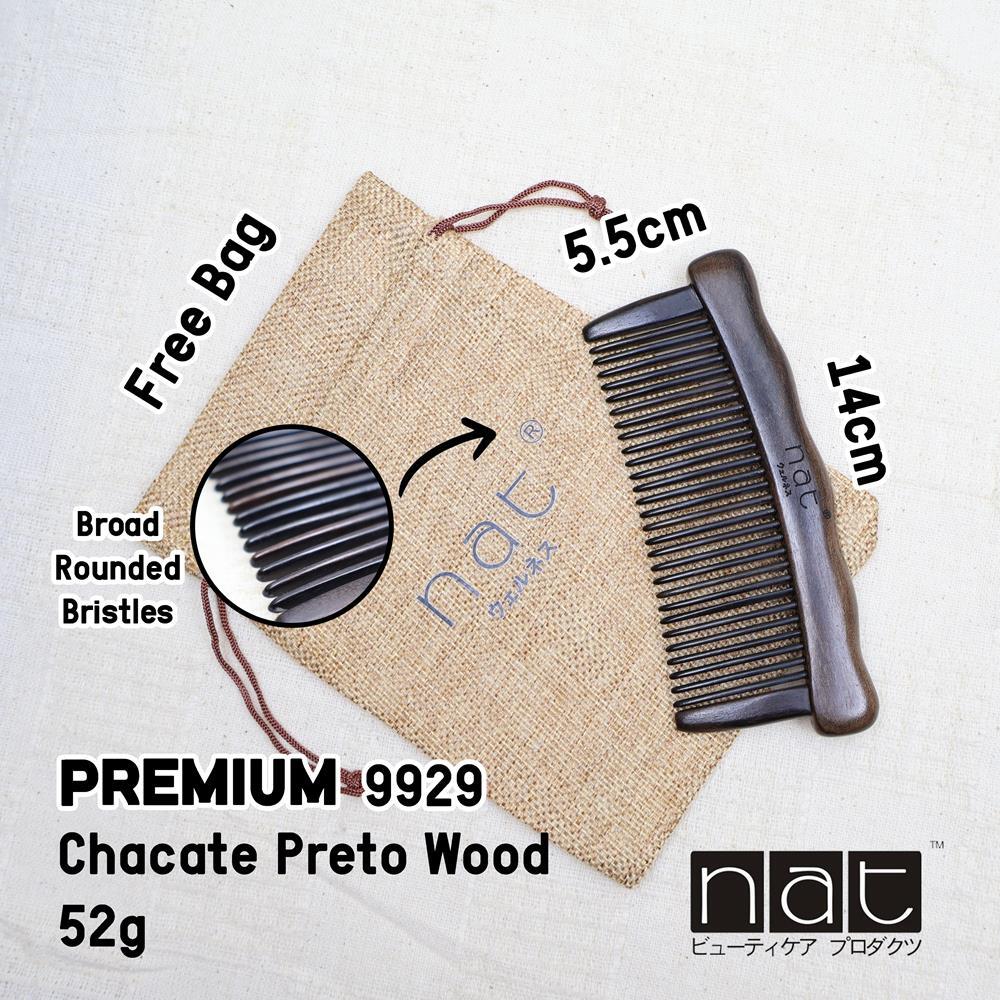 NAT Natural Chacate Preto Wooden Wood Wide Tooth Premium Anti-Static Comb Sikat Kayu [9923]