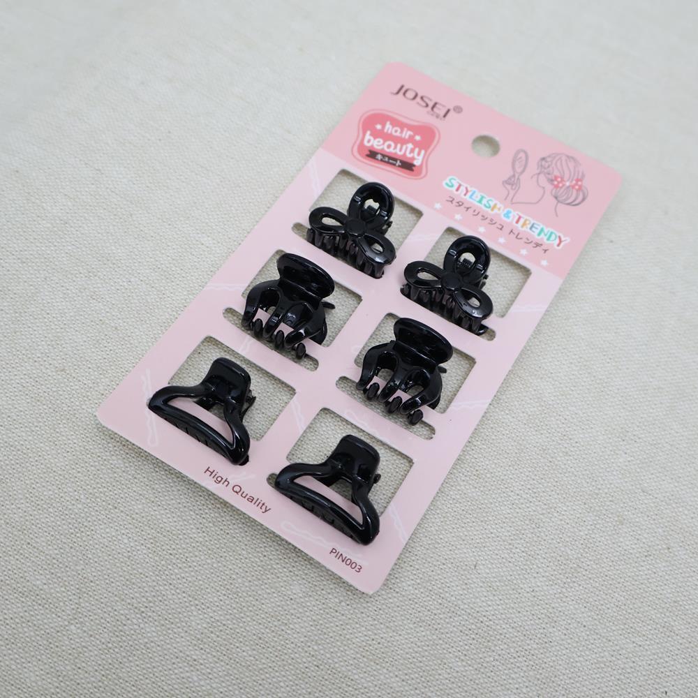 JOSEI Mini Glossy Colourful & Black Hair Claw Set (In a Set of 6)